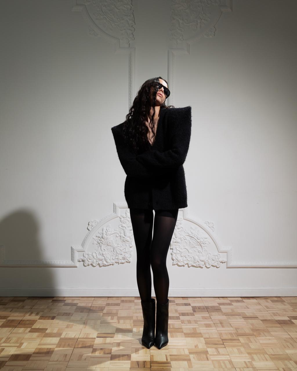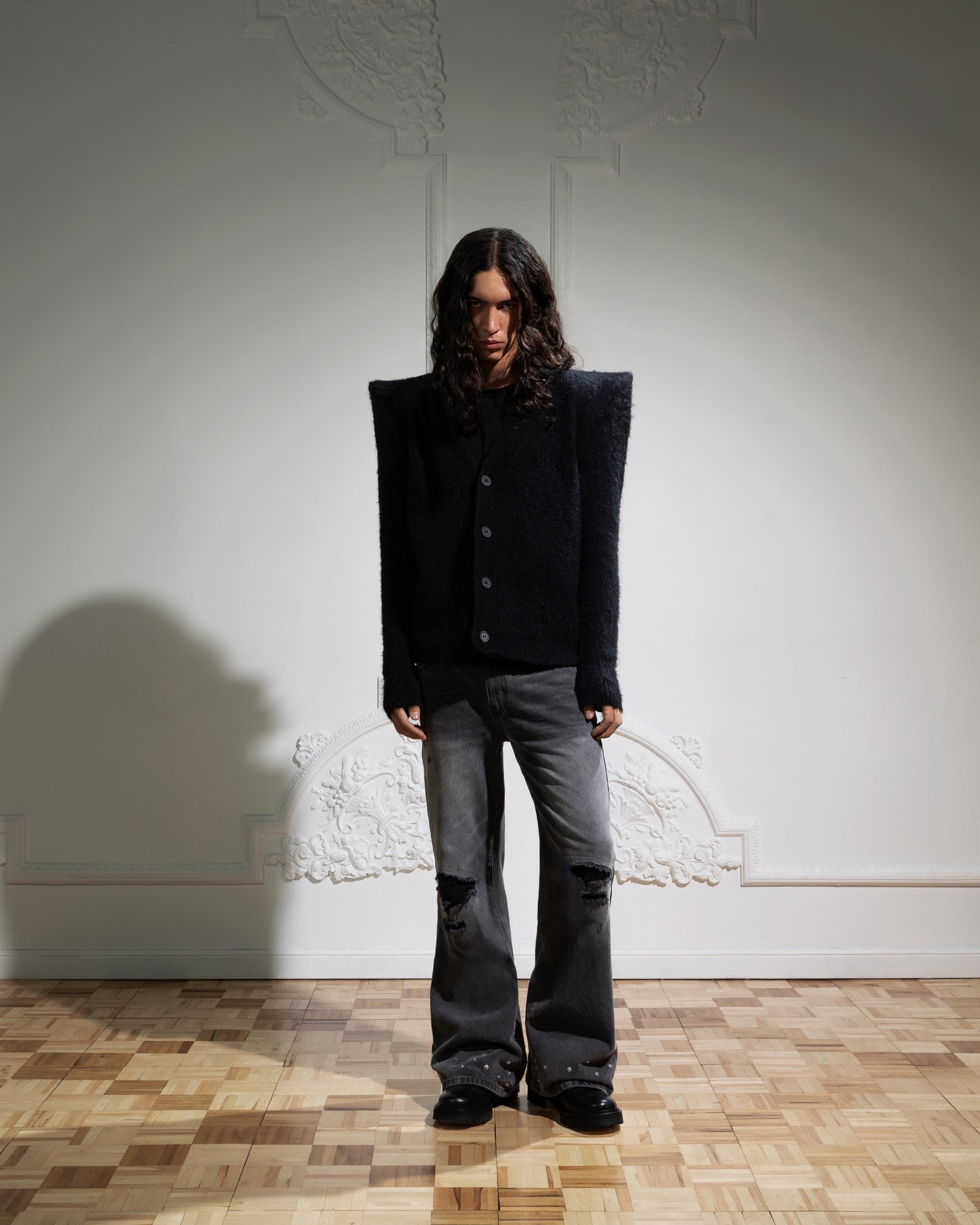 EGO SHOULDER PAD CARDIGAN in BLACK
