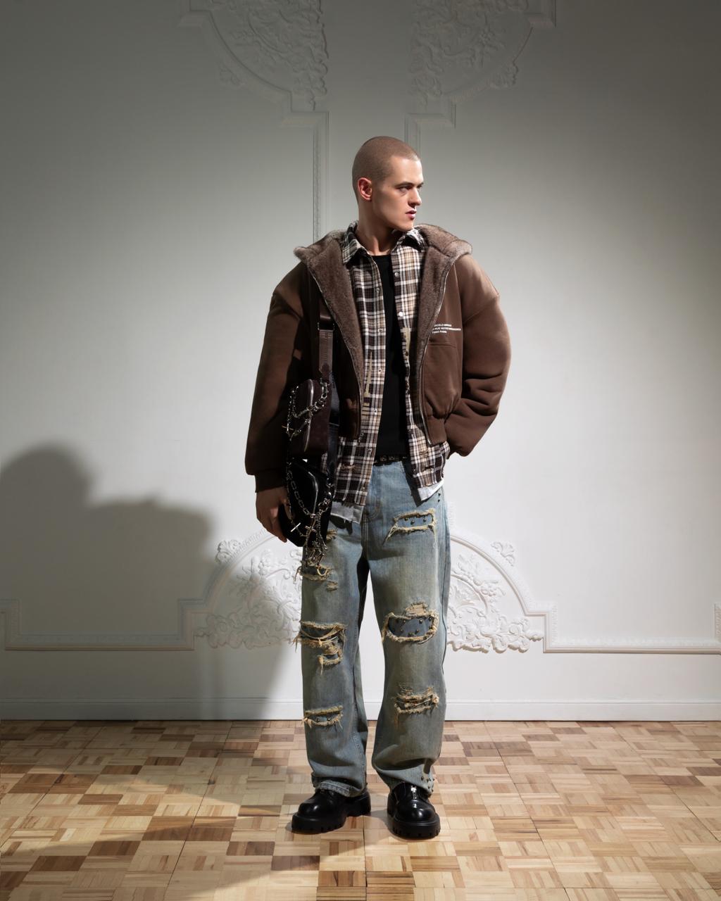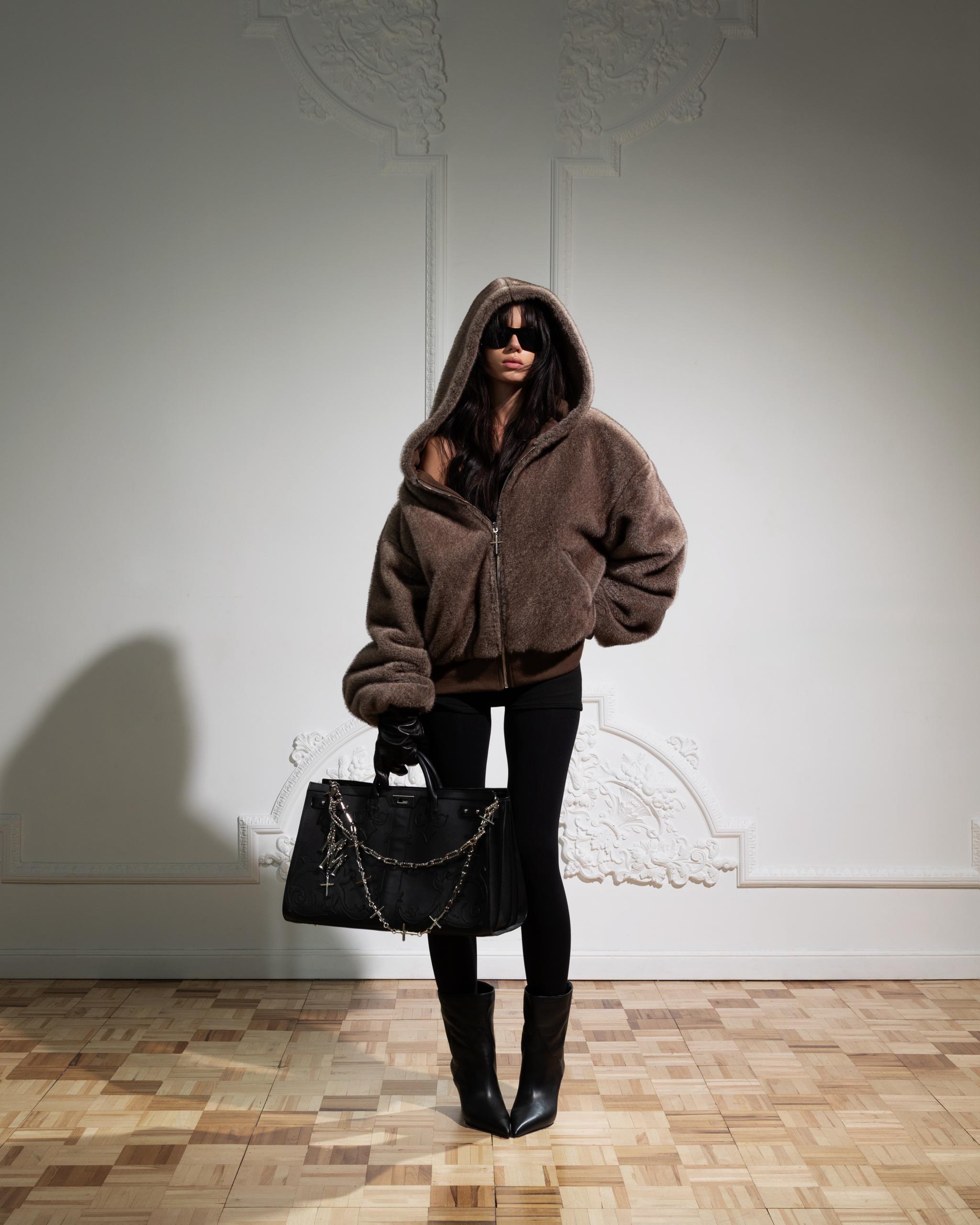 REVERSIBLE FUR ZIP HOODIE in BROWN