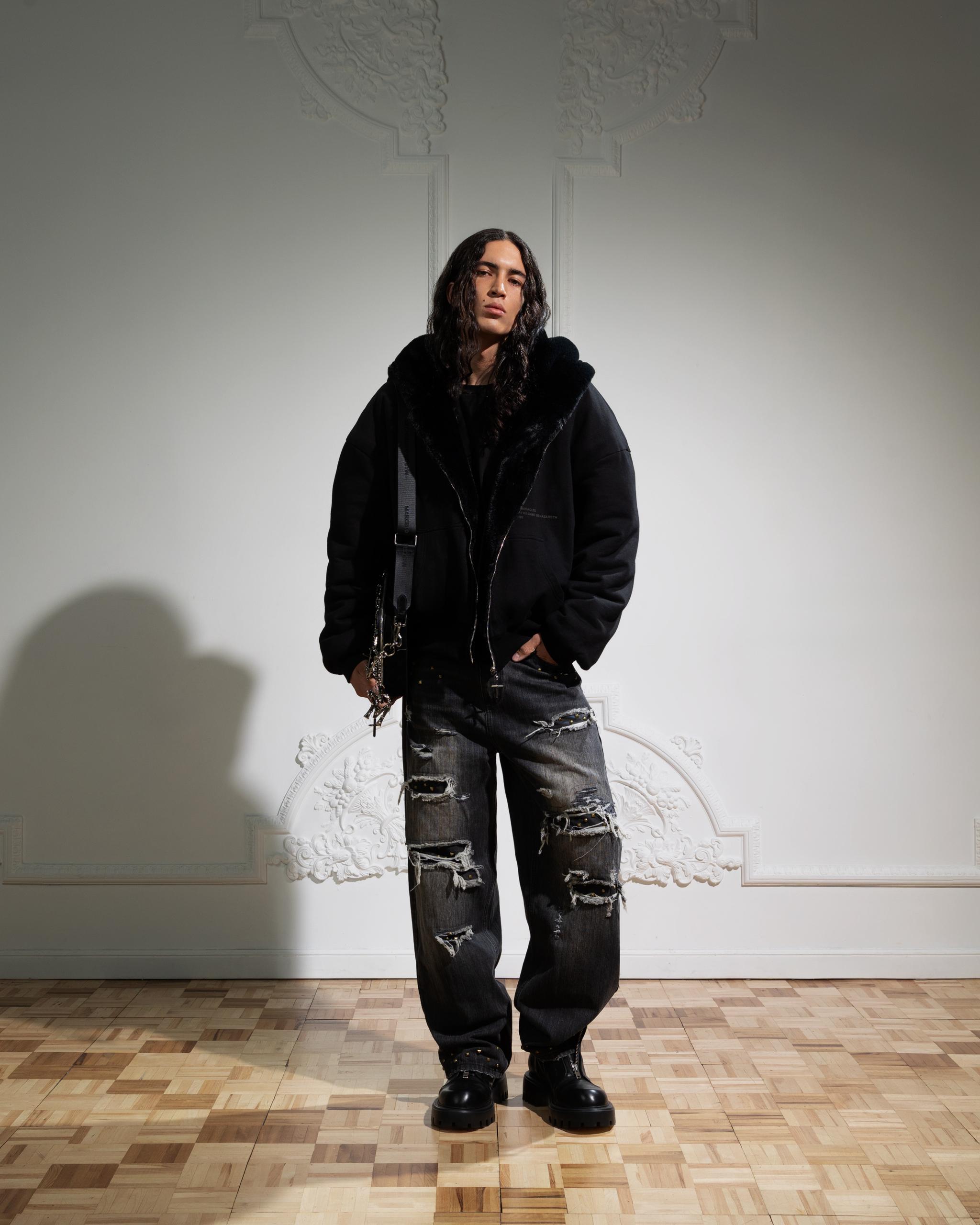 REVERSIBLE FUR ZIP HOODIE in BLACK
